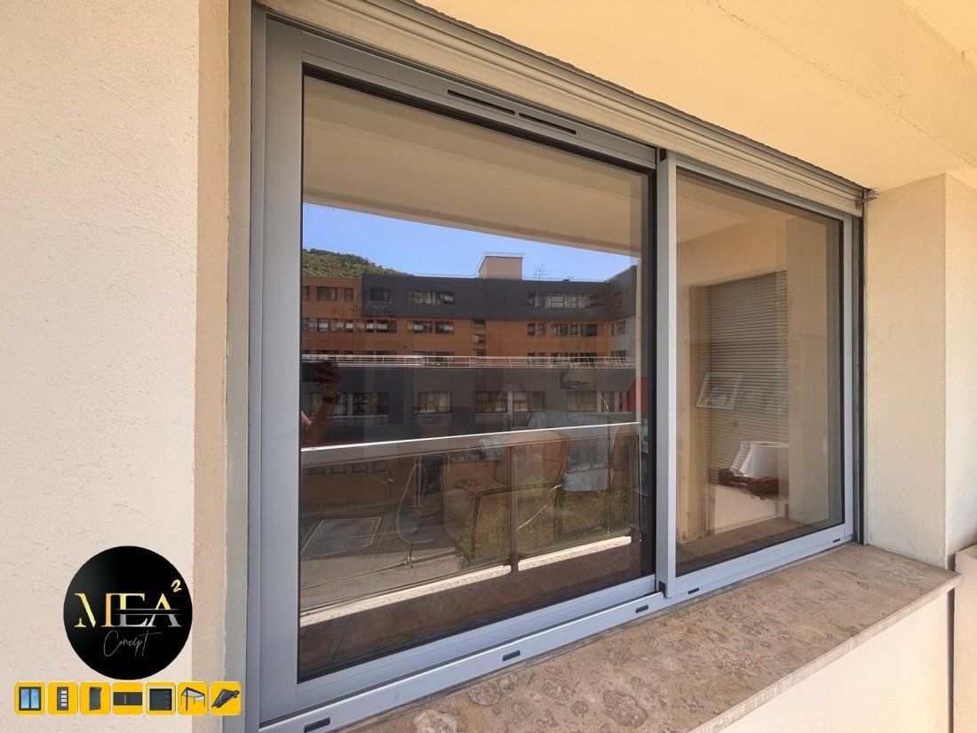 Pose d’une baie coulissante aluminium SWAO en dépose totale à Gap : rénovation complète assurant isolation optimale, luminosité et finition contemporaine, réalisée par MEA² Concept pour une agence immobilière partenaire.